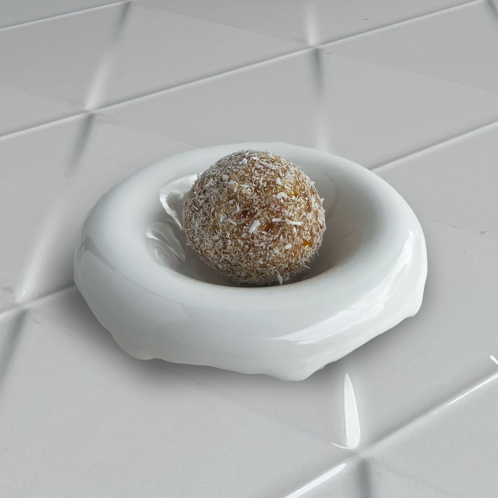 (Date, cashew nuts, lemon, coconut, corn syrup) Kcal 112 Pr 3.2 Fa 5.5 Ca 12.7