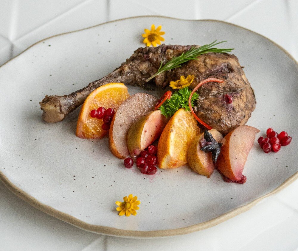 Dont forget to choose garnish (Chicken leg steak, apple, pear, orange, cinnamon stick, cranberry) Kcal 370 | Protein 32, Fat 26, Carb 1